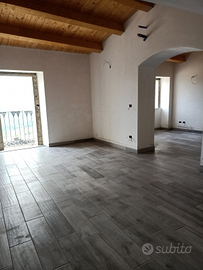 In posizione dominante sul paese e soleggiata tutto il giorno, si vende immobile indipendente ristrutturato di 105 mq e completamente arredato a nuovo, composto da due piani (piano notte e ampio piano giorno con soppalco), comprende un piccolo ingresso, due camere da letto bagno e ripostiglio al p.t., un ambiente unico cucina soggiorno con soppalco, un secondo bagno al piano superiore. Nella vendita è compresa una rimessa da 28 mq per moto o piccola auto, utile anche per eventuale deposito di legna o pellet. Prezzo da concordare solo dopo visione con persone realmente interessate. No intermediari / agenzie.