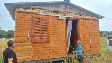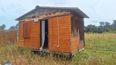 Casetta in legno con struttura in ferro 5 metri per 3 di larghezza, possibilità di creare un soppalco. La camera è dotata di bagno. La casetta ha l'impianto elettrico ed idraulico ed ha bisogno solo di manutenzione ordinaria alle pareti esterne. Si può poggiare su ruote e non ha bisogno di autorizzazioni .