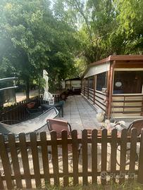 Vendesi casetta completamente arredata, attrezzata e funzionale ubicata presso camping Polvese su lago Trasimeno . Munita di ampio spazio esterno , veranda coperta , 2 bagni, 2 camere da letto cucina componibile