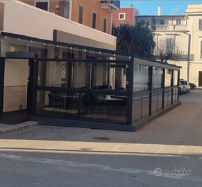 Pergotenda con telo retraibile, di dimensioni 15,8 metri di lunghezza e 5 metri di larghezza. Il telo sopra oltre ad essere retraibile è pure illuminato con illuminazione dimmerabile. Incluse ai lati 2 porte per rendere la struttura completamenre chiusa e sicura. Realizzata nel febbraio 2023 è in condizioni ottime.