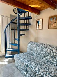 Bagno e cucina completi di tutto, box doccia, zona notte soppalcata (h 1.50 mt),comoda zona living con divano letto matrimoniale.