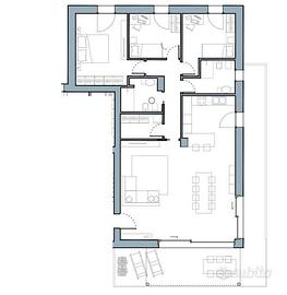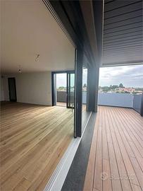 Si trova al quarto piano servito da ascensore ed è composto da ingresso su ampia zona giorno di circa 56 mq illuminata da due grandi vetrate che forniscono accesso diretto al terrazzo abitabile di 40mq dotato di pompeiana.