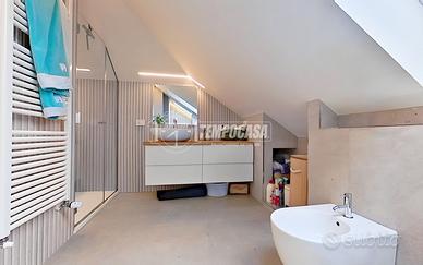 Il secondo livello, mansardato e dotato di certificato di abitabilità, ospita una zona notte altrettanto raffinata, composta da due camere matrimoniali ricche di charme e da un secondo bagno/lavanderia, anch'esso con rifiniture Porcellanosa, moderno e di forte impatto - Classe: G - IPE: 200.00 kWh/mq anno