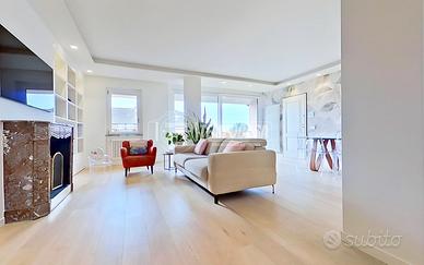 L'abitazione si sviluppa su una superficie di 140 mq calpestabili e si distingue per le sue finiture di altissimo livello, curate in ogni dettaglio. L'ingresso si apre su una splendida zona living open space caratterizzata da un ampio soggiorno con cucina abitabile a vista, progettata con materiali ricercati e impreziosita da una cantina vini Avintage integrata, ideale per gli amanti del buon vino e del design. La luminosità è uno dei tratti distintivi di questo ambiente, grazie alle grandi aperture che conducono a due comodi balconi, uno sul soggiorno FUORI MISURA triplo vetro e uno sulla cucina, ideali per godere del panorama.