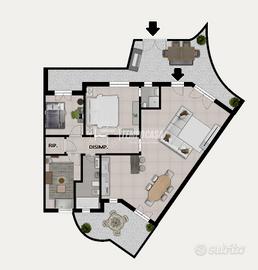 La distribuzione interna è studiata per garantire comfort e privacy grazie a un comodo disimpegno che separa la zona giorno dalla zona notte.