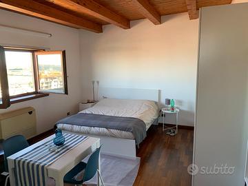Elegante e confortevole mansarda al sesto piano di un signorile condominio di mq 22 con bagno di mq 6. Vista panoramica