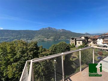 A terzo ed ultimo piano panoramica zona giorno open space con vetrate, uscita su due balconi e su terrazza con incredibile vista lago.