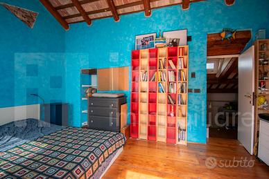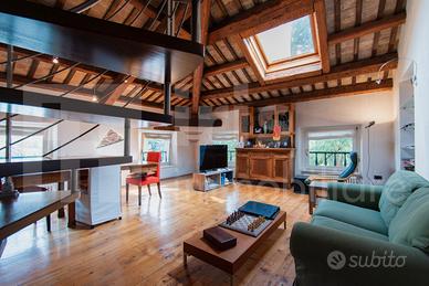 o Soggiorno a Doppia Altezza: Il cuore della casa è l'imponente soggiorno, un ambiente scenografico che esalta le travi in legno a vista del tetto.