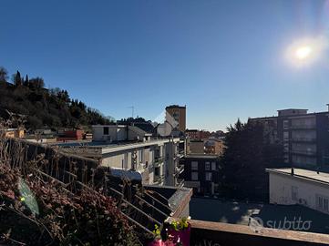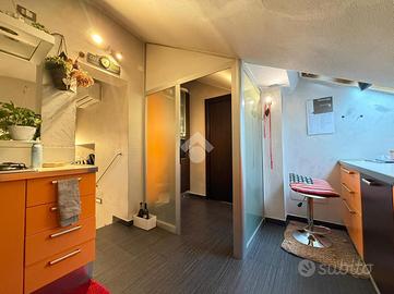 LOFT RISTRUTTURATO ALL'ULTIMO PIANO - ZONA OSPEDALE CIVILE L'immobile è stato completamente ristrutturato nel 2005, con rifacimento completo degli impianti e infissi. L'immobile si presenta in ottime condizioni ed è stato poi aggiunto un nuovo split dell'aria condizionata nella zona living. La distribuzione interna è moderna e originale: * Ampia zona living, luminosa, con doppia esposizione. * Dal soggiorno si accede alla cucina rialzata, raggiungibile tramite pochi gradini, che crea una piacevole separazione degli spazi. La cucina è ben organizzata e dotata di un ulteriore disimpegno dedicato a frigorifero e forno, che conduce direttamente al bagno finestrato, completo di vasca. Dal soggiorno si accede al primo terrazzo a tasca, esposto a sud, con vista Castello, ideale per momenti di relax. La zona living è valorizzata dalla presenza di una raffinata stufa a pellet, elemento di design che coniuga estetica e funzionalità, contribuendo al comfort dell'ambiente. La camera matrimoniale, dotata di cabina armadio, ha accesso al secondo terrazzo a tasca, esposto a ovest. Questo spazio esterno è particolarmente funzionale e dispone di ripostiglio e locale tecnico. Il riscaldamento è centralizzato con teleriscaldamento. Le spese condominiali sono pari a circa 2.000 € annui. L'immobile viene venduto completamente arredato. Soluzione ideale per chi cerca un'abitazione di carattere, all'ultimo piano, con spazi esterni vivibili e una posizione strategica servita e ben collegata.