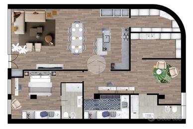 Possibilità di creare anche un secondo bagno, garantendo comfort e praticità.