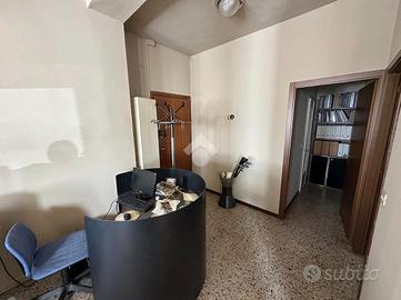 Mulazzano: Soluzione al piano rialzato, con doppio ingresso, dal vano scala condominiale o direttamente dal piano terra fronte strada. L'immobile attualemnte è ad uso ufficio composto da un unico ambiente, studio, ripostiglio e bagno.