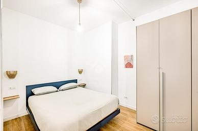 Situato in un edificio in tinta degli anni '50, questo immobile offre uno spazio versatile dove cucina e zona living si fondono in un unico ambiente, separato dalla zona notte e dal bagno, dotato di finestra e doccia.