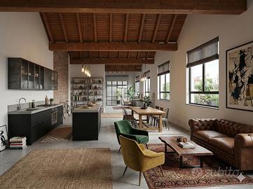 L'altezza generosa dei soffitti consente inoltre la realizzazione di un soppalco di circa 48 mq, perfetto per creare ambienti aggiuntivi come una zona notte, uno studio o uno spazio relax.