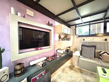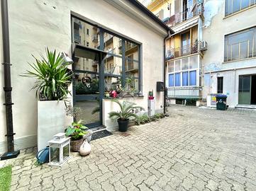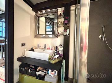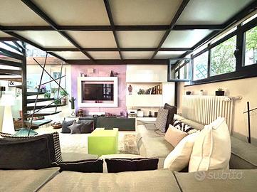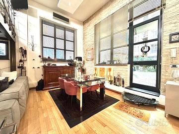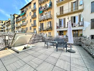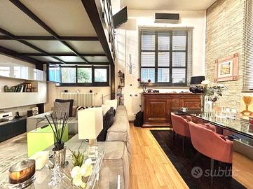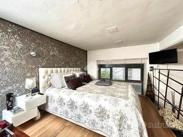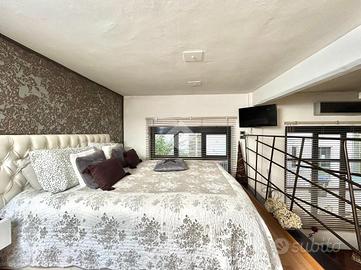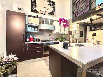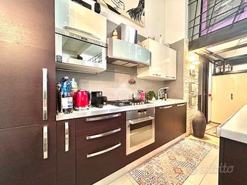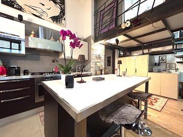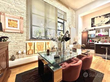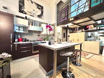 In Cit Turin, a pochi passi dalla fermata della metropolitana 'Bernini' e dal Tribunale di Giustizia, il loft si colloca in un'area silenziosa e ben servita. L'ingresso avviene su un'ampia zona living con cucina a vista e isola che garantiscono uno spazio conviviale e accogliente. La scala a chiocciola conduce al soppalco superiore, attualmente utilizzato come camera da letto matrimoniale, e alla comoda e spaziosa cabina armadio. Dalla stessa scala si accede al grande ed esclusivo terrazzo di 55mq ideale per godersi aperitivi e cene all'aperto. Il bagno è moderno e funzionale e presenta uno spazio dedicato a lavanderia con il posto per lavatrice e asciugatrice. L'appartamento è dotato di riscaldamento autonomo, di split per l'aria condizionata e di allarme perimetrale. Il loft è stato costruito nel 2006 trasformando in soluzione abitativa contemporanea una stamperia. I soffitti alti, l'utilizzo di materiali in ferro e vetro e le ampie vetrate gli conferiscono il tipico stile industriale.