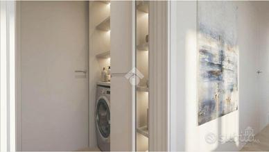 Composizione: ingresso living su soggiorno con cucina totalmente arredata su misura, camera (possibile seconda camera), disimpegno, ampio bagno di design e zona lavanderia.