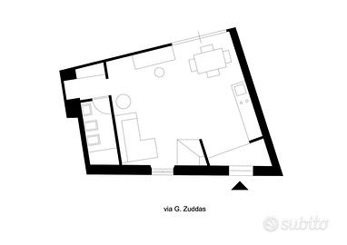 Da inizio gennaio 2026 affittasi a trasfertisti ambosessi referenziati loft recentemente ristrutturato e ammobiliato, sito al piano rialzato in via G. Zuddas, pressi di via del Redentore, a pochi passi dai principali servizi (esercizi commerciali, farmacia, poste, banca, fermate bus e metro). L'ingresso indipendente su strada si affaccia su un open space organizzato con angolo cottura, zona pranzo e zona notte (presenti una scrivania e un letto alla francese 140X200 cm). Il disimpegno con armadio a muro e lavanderia, dotato di lavatrice e asciugatrice, conduce al bagno completo di tutti i sanitari e scalda salviette. Un'ampia parete finestrata prospiciente la corte interna garantisce luce diurna e ricambio d'aria all'ambiente, a completamento della finestra su lato strada.