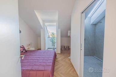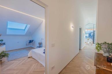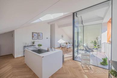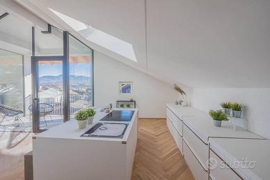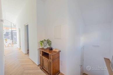 Rif:R06873KA4Z (125267295) - In una posizione privilegiata nel centro di Caldaro si trova questo esclusivo attico che occupa l'intero piano superiore di un edificio ristrutturato con stile. Già entrando si nota subito la cura particolare riservata a ogni dettaglio: il pregiato parquet a spina di pesce, le piastrelle di grandi dimensioni e i materiali perfettamente abbinati creano un'atmosfera straordinariamente elegante. Il piano è stato completamente ricostruito, compresi i soffitti, le pareti e il tetto, e soddisfa i più elevati standard di qualità abitativa moderna e di alto livello. Dall'appartamento si gode di una vista da sogno sui tetti del centro storico, sul campanile della chiesa e sulla dolce campagna verdeggiante di Caldaro. La loggia è sapientemente orientata in modo da offrire una zona relax all'aperto protetta e con molta privacy, ideale per rilassarsi, godersi il panorama o trascorrere serate in compagnia. Le stanze colpiscono per l'altezza straordinaria di circa quattro metri, che conferisce una sensazione incomparabile di spaziosità e ampiezza. Su una generosa superficie abitabile netta di quasi 107 mq si distribuiscono tre ampie camere da letto e due bagni moderni, anch'essi rifiniti con materiali di alta qualità. Il cuore dell'appartamento è costituito dal soggiorno open space di 45 mq: uno spazio abitativo luminoso con una facciata vetrata mozzafiato che lascia entrare molta luce naturale e mette perfettamente in risalto la vista unica. Grazie al riscaldamento a pavimento e all'aria condizionata, il clima interno è piacevole tutto l'anno. Un altro vantaggio: non si tratta di un condominio, ma di un edificio composto da sole 4 unità, che garantisce la massima indipendenza e privacy. Se necessario, è possibile acquistare anche un garage. L'appartamento può essere utilizzato come casa vacanze o affittato a turisti, poiché dispone di una licen - Classe: B - IPE: 175.00 kWh/mq anno