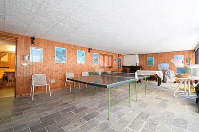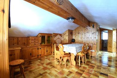 L'appartamento è situato al piano mansardato di una palazzina posta a pochi passi dai servizi del centro di Antey-Saint-André. Lo stabile, edificato a metà degli anni '70, si presenta in buono stato e gode di una bella terrazza comune con vista sul monte Cervino. Gli altri servizi comuni, oltre al riscaldamento, comprendono una piacevole taverna di generose dimensioni fornita di un angolo cottura, di un angolo bar e di un servizio. Oltre la taverna un patio, sempre in uso comune, offre un luogo coperto con giochi e caminetto. da qui si può accedere direttamente al terrazzo comune e alla zona barbecue.