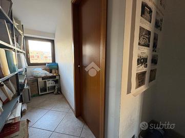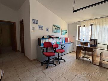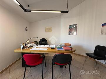 Internamente troviamo due bagni in buone condizioni, infissi in legno con vetrocamera, pavimenti in ceramica, riscaldamento autonomo con termoconvettori, tre condizionatori, oltre al videocitofono. L'attuale uso come studio professionale non preclude la destinazione abitativa, già regolare.