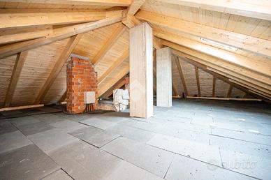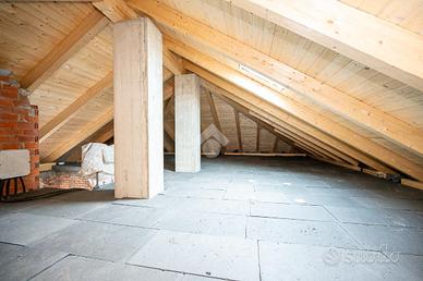 Il condominio composto da sole sei unità abitative, si trova nella zona centrale del paese ad appena 100 metri di distanza dalla nuova Piazza del filatoio dove sono presenti tutti i vari servizi e attività commerciali quali, supermercato, bar, panetteria, lavanderia, medici di base e farmacia. La fermata della linea 59 è nelle immediate vicinanze e offre la possibilità di collegarsi direttamente al Centro di Torino. Nell'ultimo anno è stata effettuata una profonda ristrutturazione e grazie al eco bonus del 110% sono stati rifatti, facciata, cappotto, tetto, sono stati installati i pannelli solari, sostituiti i serramenti di ogni singola unità abitativa ed è stata installata la caldaia centralizzata a condensazione. La mansarda di 139mq è situata al terzo piano e ad oggi si presenta in stato grezzo. Grazie alla sua metratura è possibile ricavare un appartamento di 95mq calpestabili. Al piano strada è presente un posto auto all'interno del cortile condominiale.