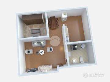 Piccola palazzina in paramano degli anni '80 situata in una zona tranquilla del centro paese. L'appartamento, posto al terzo ed ultimo piano, si presenta completamente arredato. L'ingresso si apre su un luminoso soggiorno con camino, collegato alla cucina abitabile. La zona notte è composta da una camera da letto di generose dimensioni e da un bagno finestrato, dotato di doccia e predisposizione per la lavatrice. L'immobile è mansardato e rifinito con travi in legno a vista, che conferiscono un'atmosfera calda e accogliente. Il riscaldamento è autonomo a radiatori e le spese condominiali sono contenute. La posizione è strategica, comoda a tutti i principali servizi.