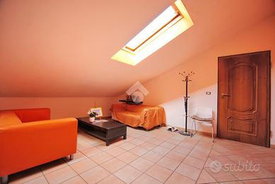 La palazzina sorge prossima al centro del paese e si sviluppa su tre piani fuori terra. La sua posizione garantisce comodità ai servizi quali farmacia, bar, panetteria e altre piccole attività locali che consentono ai residenti di non doversi spostare in auto per le piccole spese quotidiane. La scala condominiale, piastrellata in granito, conduce sino al secondo e ultimo piano, ove è situato l'appartamento in oggetto. La porta blindata si apre su un ampio locale che unisce il soggiorno e la cucina in un unico ambiente, creando un open-space illuminato da due finestre velux e da un abbaino con vista su strada. Il disimpegno separa la zona notte dalla zona giorno poc'anzi citata. Le camere da letto sono due: la camera matrimoniale è pavimentata in parquet, mentre la cameretta riprende la pavimentazione della zona living con piastrelle in ceramica. Il bagno, con allacci per la lavatrice, è pavimentato in gres porcellanato effetto legno ed è accessoriato di doccia, la cui parete in pietra dona un tocco moderno. Completa la proprietà un comodo vano ripostiglio.