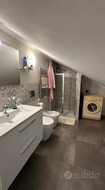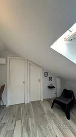 Infine abbiamo la camera da letto, ampia e spaziosa, e il bagno, comodo e confortevole. Nella nostra moderna e minimal mansarda, sono presenti una camera da letto e due divani letto, uno all'ingresso subito dopo le scale e l'altro nell'ampio salotto. La cucina e la sala pranzo, sono situate nella stessa area in cui vi è il salotto, come se fosse un unico ambiente. Di fianco, vi sono due porte, una del bagno e l'altra della camera da letto. L'appartamento gode di una vista incantevole. Dai lucernari è possibile ammirare il piccolo canale e la meravigliosa natura che circonda il condomino. La distanza dal centro città e dallo splendido
