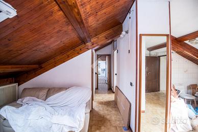 In zona tranquilla e ben servita, proponiamo in vendita un ampio trilocale mansardato di 92 mq, sito al 4° e ultimo piano di una palazzina dotata di ascensore.