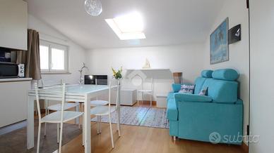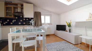 L'immobile si presenta in ottime condizioni, pronto per essere utilizzato senza necessità di interventi e viene ceduto completo dell'intero blocco cucina e parte della mobilia: pavimentazione in parquet su tutta la superficie, infissi in alluminio con doppio vetro, portoncino blindato, impiantistica autonoma, aria condizionata. Tutti gli ambienti sono ampi e luminosi e non vengono minimamente compromessi dalla lieve spiovenza presente solo su parte del soggiorno.