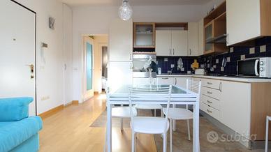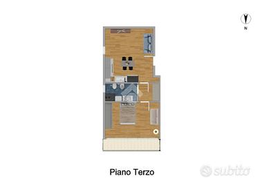 L'appartamento è composto da un soggiorno con cucina a vista, camera matrimoniale, bagno con finestra, ed un balcone prospiciente la camera esposto a nord.