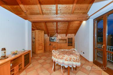 In zona tranquilla e comoda a tutti i principali servizi del paese, proponiamo in vendita un appartamento mansardato inserito in una soluzione indipendente completamente ristrutturata nel 2013.L'ingresso conduce a un disimpegno che collega con funzionalità le diverse stanze. La zona giorno, caratterizzata da soffitto con travi in legno a vista, si distingue per l'atmosfera calda e accogliente. Il soggiorno è valorizzato da un camino funzionante con rivestimento in pietra e da una porta finestra in legno che consente l'accesso diretto al balcone, garantendo al tempo stesso un'ottima luminosità naturale.La zona notte comprende una camera matrimoniale dotata di velux oversize, che assicura illuminazione naturale e piacevole aerazione. Il bagno, ampio e luminoso, dispone di due finestre, vasca e termoarredo, garantendo comfort e funzionalità in ogni stagione. A completare il piano abitativo, un comodo ripostiglio con attacchi già predisposti per la realizzazione di una pratica zona lavanderia.Completano la proprietà una cantina e un posto auto assegnato all'interno del cortile.Soluzione ideale per chi ricerca indipendenza, ambienti curati e assenza di spese condominiali, in contesto riservato ma ben servito.