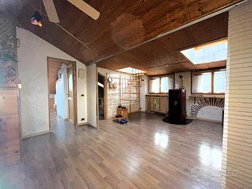 L'immobile, situato all'ultimo piano, è molto luminoso grazie alla presenza di numerosi velux che donano aria e luce agli ambienti.