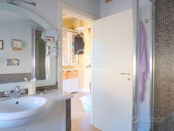 L'appartamento si estende su 116 m² commerciali e 110 m² calpestabili, offrendo un ampio salone, due camere da letto una delle quali con affaccio su terrazzino, cabina armadio e bagno privato un secondo bagno, una cucina spaziosa e un pratico ripostiglio. Il balcone perimetrale su tre lati, con veranda sul lato della cucina, è perfetto per godersi momenti di relax all'aperto.