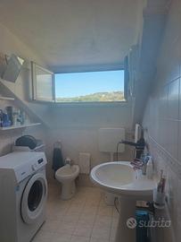 L' appartamento si presenta con l' entrata che dà sulla zona giorno, cucina a vista e zona living, con un balcone ed una finestra, per cui molto luminosa e soprattutto da dove si può ammirare un bel panorama. Inoltre è presente una camera matrimoniale con soffitto spiovente ed una stanzetta più piccola, un bagno con box doccia. È dotata di riscaldamento autonomo con termosifoni e un condizionatore. L' appartamento si vende ammobiliato di cucina, tavolo, sedie, letti, guardaroba.
