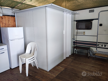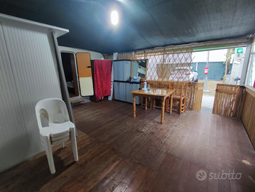 Vendo piazzola all'interno del Camping Nuovo. Due letti matrimoniali, cucina con lavabo nuovo ,bagno con sanitrit costruito l'anno scorso da completare lascio a disposizione anche piatto doccia e boiler. Bagno in roulotte funzionante. Cucina a gas. Libera su due lati. Telone perfetto. Solo interessati. animali ammessi. 400 MT dal mare.