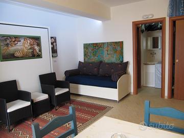 Affittasi graziosissimo monolocale indipendente, posto al piano attico (2° piano con scala comoda), di 35 mq e con quattro posti letto per adulti, con vista mare e terrazzino antistante. Tutto il mobilio è nuovo ed è stato progettato per trasformarsi, in un baleno, da zona giorno a zona notte, vi è la lavatrice, la tv con parabola, l'aria condizionata e ogni altra cosa necessaria per una comoda vacanza. L'appartamento si affitta settimanalmente, da sabato ore 15,00 a sabato ore 10,00 ed è locato vicino alla Riserva marina di Marinello, in vicinanza del punto di partenza per le isole Eolie e a poche centinaia di metri dal centro di Oliveri dove è possibile reperire ogni servizio utile.