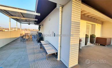 INTROVABILE ATTICO con travature bianche e con meravigliosa terrazza angolare. Con particolarità di avere lascensore che porta al piano e diretto ingresso personale allimmobile. Noterai subito una bella vista aperta e sarai stupito dalla meravigliosa terrazza con pompeiana con copertura a pergola bioclimatica dove passare le tue giornate o serate allaperto. Lampia zona giorno ha è suddivisa tra una cottura/pranzo semi separata che permette di inserire un intero arredo di cucina completa angolare e una zona living tv salotto molto comoda. Le stanze letto sono 3 con due bagni finestrati con aggiunta anche di una comoda stanza ripostiglio per tutti gli usi. Lappartamento è abbellito da travature in legno ad altezza normale NON MANSARDATA che dona un tocco di particolarità e modernità a tutto lambiente Tipo di costruzione avanzata in Classe A4 con tecnologia geotermica, con riscaldamento e condizionamento a pavimento, pannelli fotovoltaici, VMC ventilazione meccanica per la salubrità dellambiente, pavimentazione e illuminazione dallo stile moderno. Nel prezzo è compreso un garage, una cantina e un posto auto. PRIVACY , AMPIA APERTURA , LUCE E ARIA sono i punti forti di questo attico in zona centrale. Vieni con noi a vederlo .. e apprezzerai le sue caratteristiche. Classe Energetica "A4" EP 7,44 Kwh/mq anno Prezzo Euro 349.000,00 Nostro Rif. MR3001 Se per acquistare questo immobile hai la necessità di vendere prima un altro immobile, non preoccuparti perché ce ne occuperemo noi, seguendoti passo a passo sia nella vendita che nel successivo acquisto. Si precisa che l'indirizzo esposto in pubblicità, per indicare la zona in cui si trova l'immobile in RIFERIMENTO: MR3001 CLASSE ENERGETICA: 7,44 kWh/m2 a