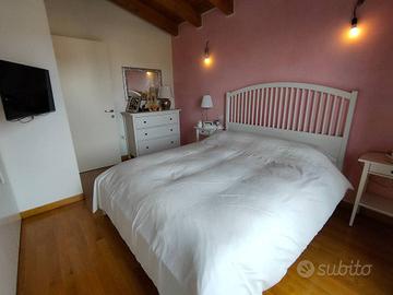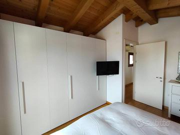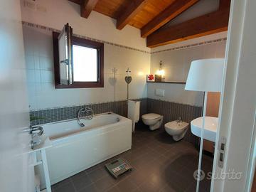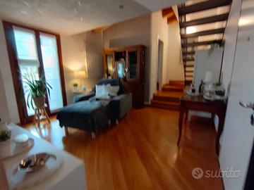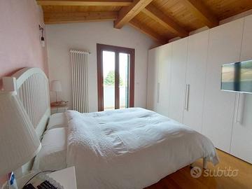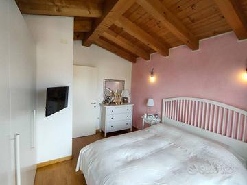 Rif:D (127884050) - Proponiamo in vendita elegante appartamento disposto su due livelli, situato in una piccola palazzina di recente costruzione (anno 2006) composta da poche unità abitative, in contesto tranquillo e ben abitato. L'immobile si distingue per le finiture di pregio e per l'ottimo stato di manutenzione, curato nei minimi dettagli. La zona giorno è composta da un luminoso soggiorno con cucina abitabile, bagno lavanderia, terrazzo abitabile, vano scale, mentre la zona notte, caratterizzata da suggestive travi a vista, ospita due camere da letto, bagno e terrazzo. Completano la proprietà due bagni, ampie terrazze abitabili ideali per momenti di relax all'aperto, pavimenti in legno di qualità e impianto di riscaldamento termoautonomo e videocitofono. È presente inoltre impianto di climatizzazione caldo/freddo nel reparto notte. A servizio dell'immobile troviamo un comodo garage di circa 25 mq e un posto auto scoperto. Le spese condominiali sono contenute (circa 33 euro/mese) e il contesto è particolarmente gradevole, abitato da proprietari e ben curato. Occasione unica !!! - Classe: G - IPE: 175.00 kWh/mq anno