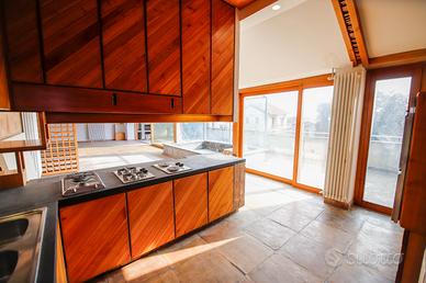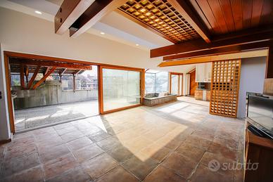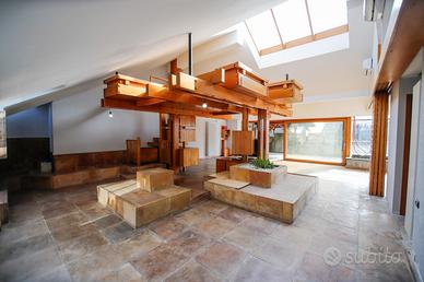 L'attico sviluppa una metratura catastale di 258 mq., mansardato con un colmo di 4,85 mt., dove vi è presente uno splendido soppalco in legno pregiato illuminato da un esclusivo lucernario soprastante.