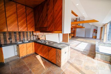 Tra il salone e la cucina a tagliare nel mezzo l'ampia vetrata, vi è una pregevole fioriera completa di attacchi per l'acqua trasformabile in una casca idromassaggio.