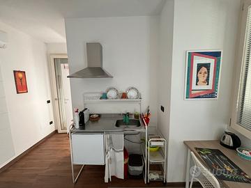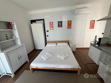 Monolocale arredato. Giardino e balcone. Cucina piccola con piastra ad induzione. Utenze incluse, acqua, gas. Esclusa elettricità. Solo referenziati. No perditempo.