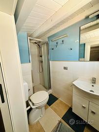 Monolocale arredato che comprende un soggiorno/cucina completa di tutti gli elettrodomestici e un divano letto, una camera da letto e bagno completo di tutto.
