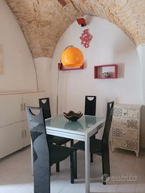 All'interno si compone di una bellissima sala da pranzo con volte a stella, angolo cottura, divano letto con armadio e bagno con doccia.