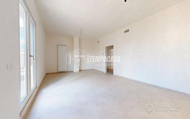 La zona giorno, ampia e accogliente, si apre verso l'esterno grazie a una grande porta finestra che conduce a un terrazzo di 35 mq, uno spazio reale da vivere ogni giorno: colazioni all'aperto, momenti di relax, cene con chi ami.