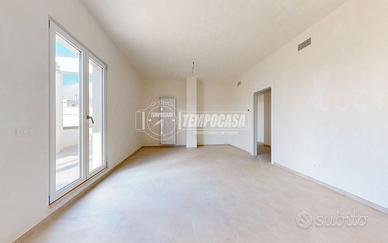 Salendo comodamente in ascensore fino al terzo piano, si entra in un attico completamente ristrutturato, nuovo e mai abitato, dove la luce è protagonista fin dal primo passo.