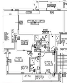 Attico al terzo ed ultimo piano composto da ingresso - soggiorno - cucina di oltre 40 mq, 3 terrazze di cui la principale abitabile, 3 camere, 2 bagni e disimpegno.