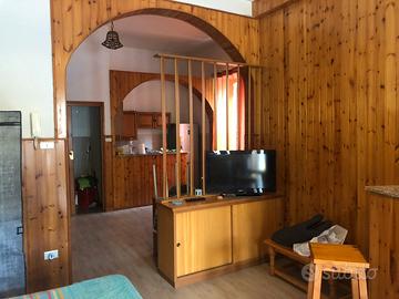 Open space PER SINGLE composto da angolo cottura con penisola , disimpegno, 1 bagno , l'open space risulta costituito da due ambienti tramite mobile in legno. Angolo bar , caminetto , condizionatore . Scrivania , 1 letto singolo , 1 armadio , n due sgabelli per penisola divano 3 posti + 2 poltrone, tavolino , manca solo il tavolo e le sedie per il pranzo , No lavatrice solo attacco idrico No Tv solo presa Accesso indipendente , piano terra Di fronte centro commerciale di Andreotta e quindi vicino a tutti i servizi nel raggio di 150 metri SOLO REFERENZIATI