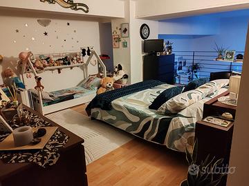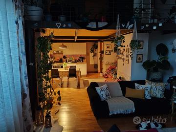 Il loft, posto al piano terra, si compone di: ingresso su soggiorno, ambiente cucina con angolo cottura e sala da pranzo, bagno cieco con box doccia, scala interna che conduce al soppalco dove troviamo la camera da letto matrimoniale con comoda ed ampia cabina armadio.