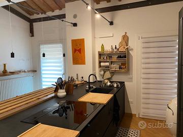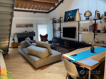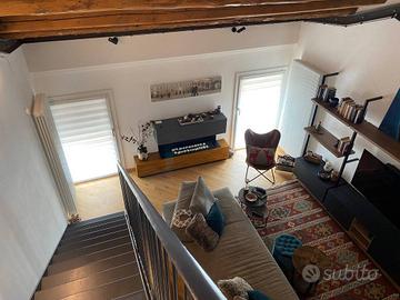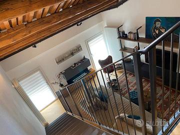 Rif: Via Palestro (191649087) - Centralissimo, in piccolo Palazzotto del 1500' oggetto di accurato restauro conservativo completo, prestigioso appartamento/attico sito al secondo piano e ultimo, servito da ascensore, disposto su due livelli cosi' composto: ingresso disimpegno corridoio, salone di 40 mq. circa con camino a bioetanolo e vista chiesa di Santo Spirito, grande cucina abitabile con terrazzino interno fruibile vista tetti, zona notte con camera da letto matrimoniale, ampio ripostiglio, bagno cieco con ampia doccia, piccola lavanderia con lavatrice e accumulatore acqua calda con pompa di calore. Al piano superiore soppalco uso studio, camera da letto mansardata con grande cabina armadio san giacomo con porte scorrevoli, bagno finestrato con doccia. Riscaldamento autonomo con caldaia esterna a condensazione, clima con pompa di calore, cantina e deposito cicli al piano terra. Rifiniture di alto pregio, travi originali con tavelle a vista, parquet in rovere, velux con tendine oscuranti, bagni rifiniti con piastrelle Marazzi, sistema di allarme, termo valvole. - Classe: C - IPE: 175.00 kWh/mq anno