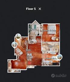 Elemento Scenografico: Una grande scala in legno conduce ad un affascinante soggiorno soppalcato di circa 30 mq, ideale come studio, zona relax aggiuntiva o spazio hobby.